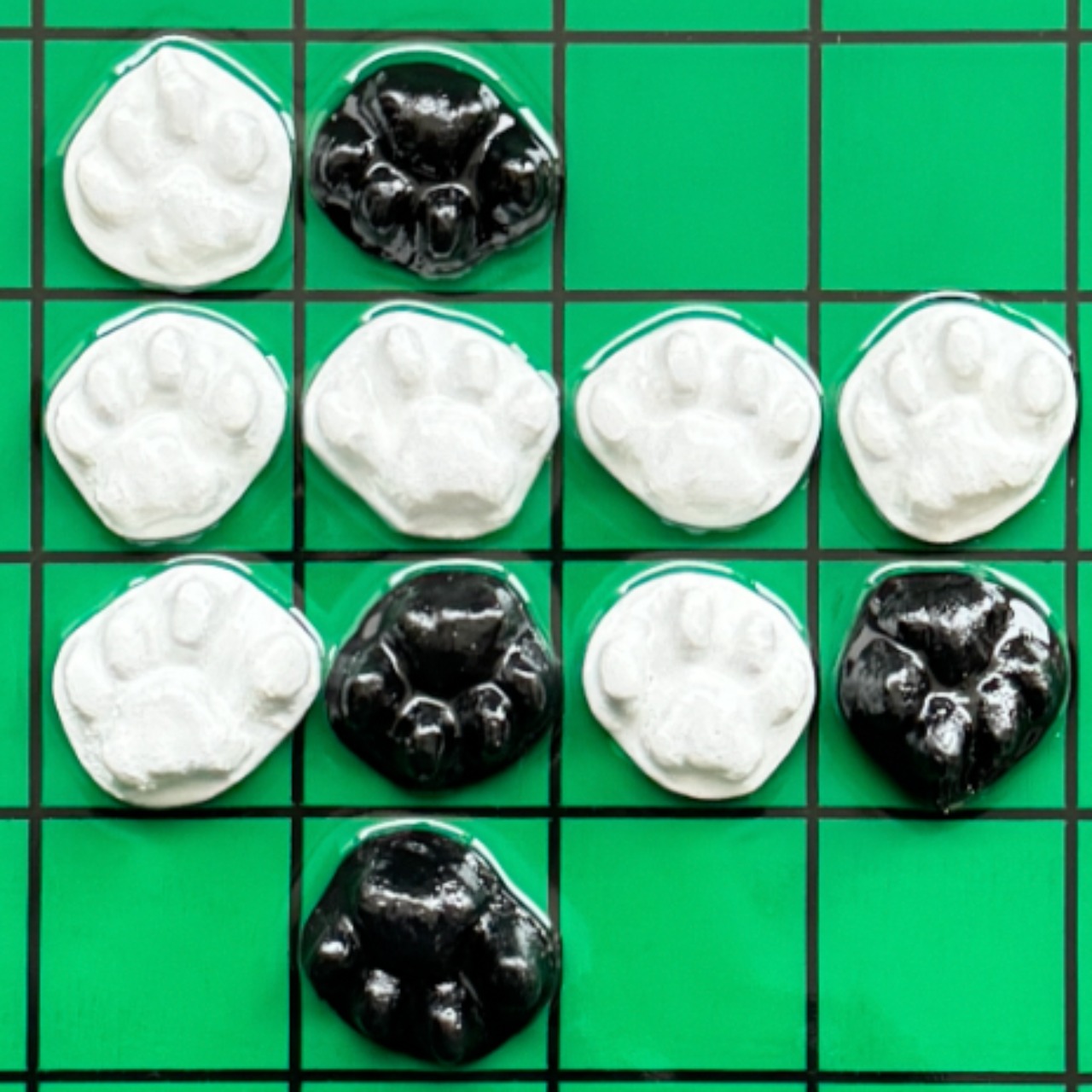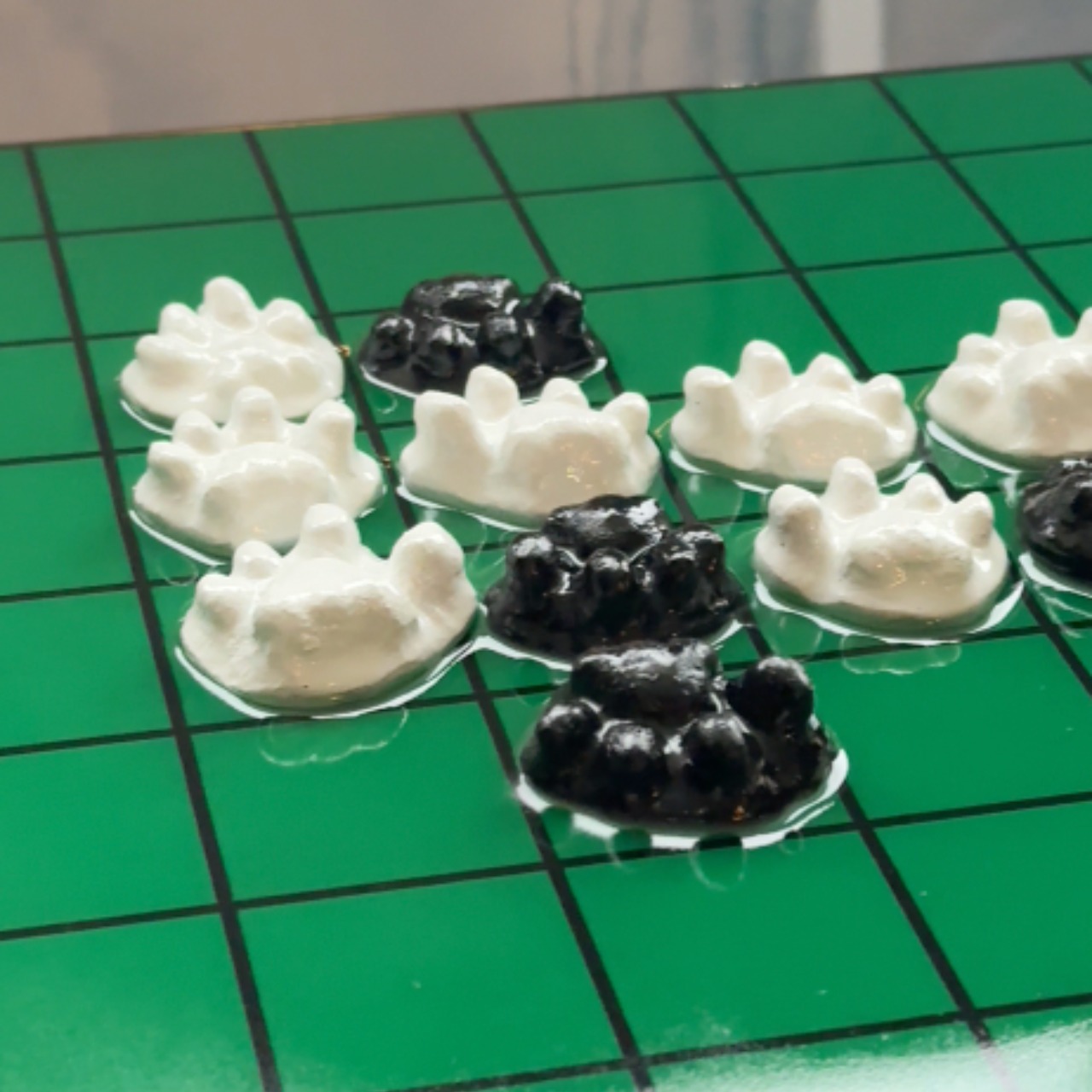 ・深いグリーンの“盤面”が、足跡をただの装飾ではなく「配置」に変える